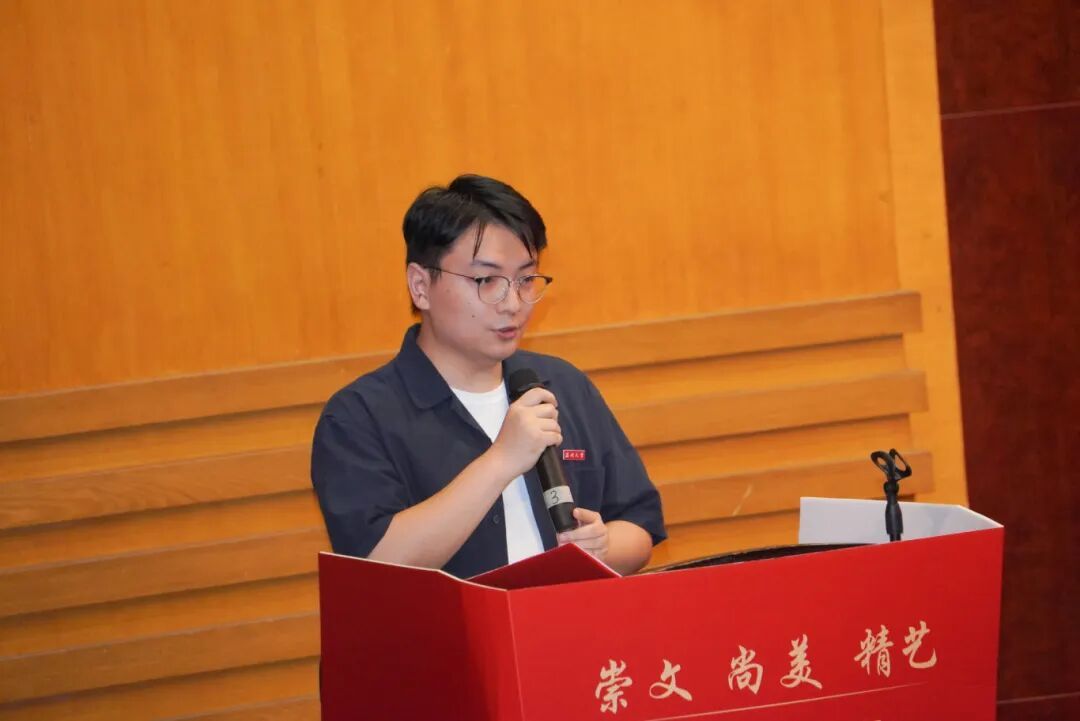 班主任代表江南老师从学习思维建构、专业能力提升、自我身心关怀三方面,向新生分享了治学心得与感悟,他鼓励新生们以笔为戈,以心为镜,承继传统、勇于创新,在每一次创作中践行温大精神。