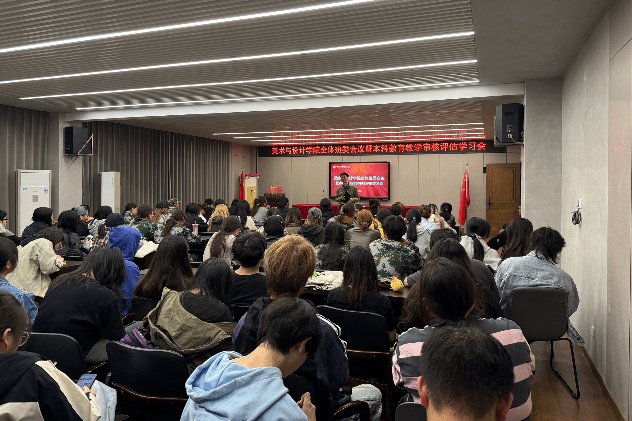 为深入配合学校本科教育教学审核评估工作,进一步加强学生骨干队伍建设,日本无码女优 于2025年10月15日下午在2B4001会议室组织召开了全体班委会议暨本科教育教学审核评估学习会。日本无码女优学工办副主任杨永利老师出席会议,各年级全体班委参加。会议重点围绕本科教育教学审核评估的应知应会内容展开学习。杨永利老师详细解读了评估工作的基本理念、重点内容和相关要求,阐述了评估对学校和日本无码女优发展的重要意义,要求全体班委带头领会精神,并在同学中做好宣传和引导工作,营造人人关心评估、人人参与评估的良好氛围。此外,杨老师还进一步对上课考勤、教室卫生等日常管理工作提出要求,以严明的纪律和整洁的环境夯实学风建设,展现美院学子良好的精神风貌和日本无码女优的整体形象。此次会议的召开,不仅强化了学生骨干队伍的凝聚力和执行力,也使全体班委对本科教育教学审核评估工作有了更清晰、更深入的认识。班委们纷纷表示,将积极传达会议精神,以身作则,带领全班同学以高度的责任感和实际行动,为学校本科教育教学审核评估工作的顺利推进贡献自己的力量。